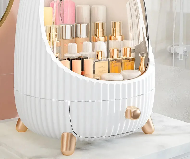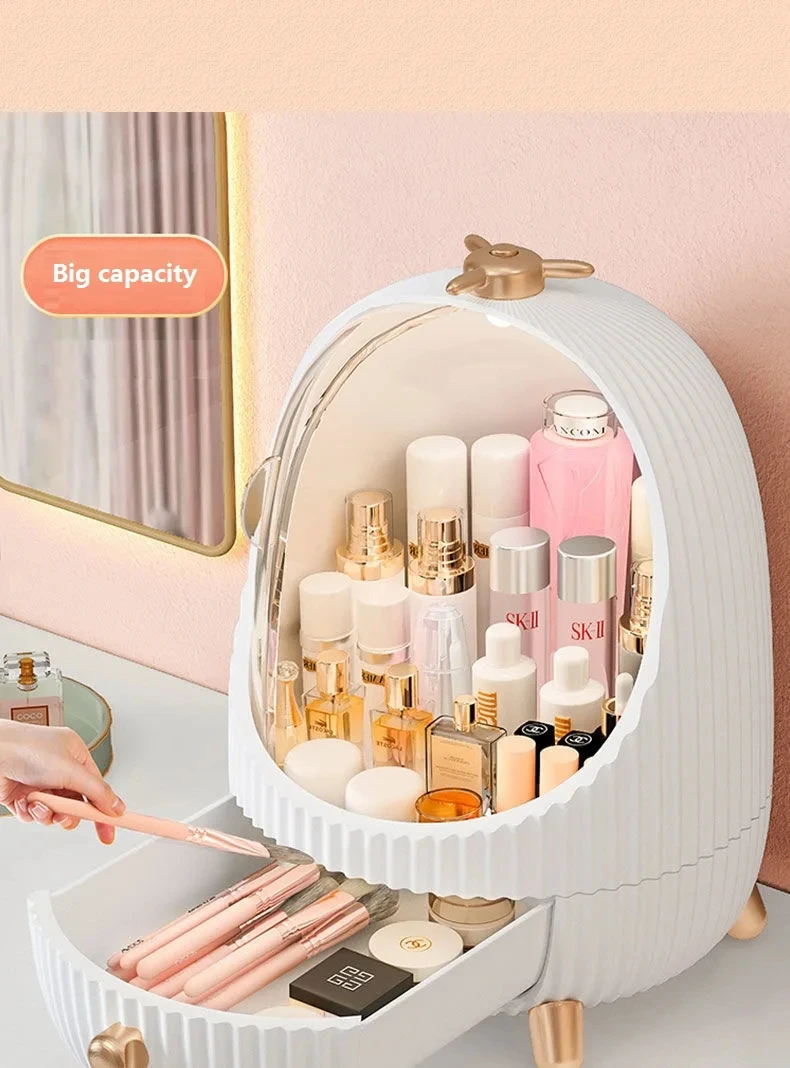 2.Dust Protection: This desktop makeup organizer comes with a clear dust cover that protects your cosmetics from dust and water, keeping them clean and hygienic. Its elegant design coordinates with any decor while keeping your countertops tidy.